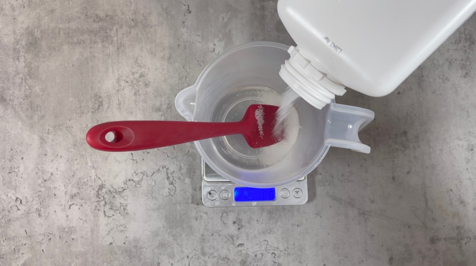- Add the sodium hydroxide (lye) to the water.