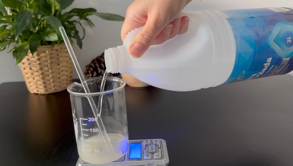 - Add phase A ingredients to a heat-resistant beaker. Start by making a slurry by combining xanthan gum and glycerin, then add the distilled water and cover with aluminium foil.