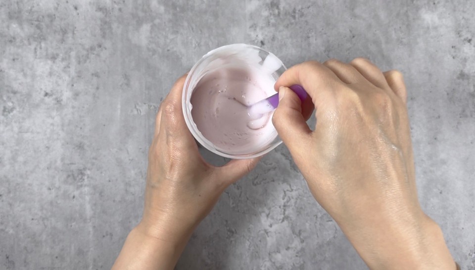- If you want to add color that is optional, I added a pinch of pink oxide and mixed it.