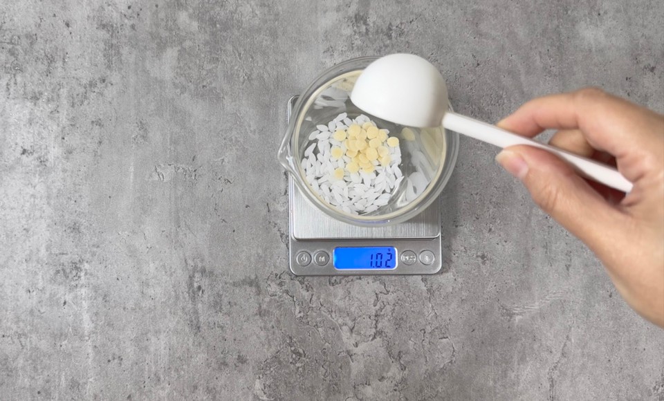 In general, an emulsion combines oil and water, so we will need an ingredient that binds these two together. In cosmetics, we use an emulsifying wax to bind water-based and oil-based ingredients.
