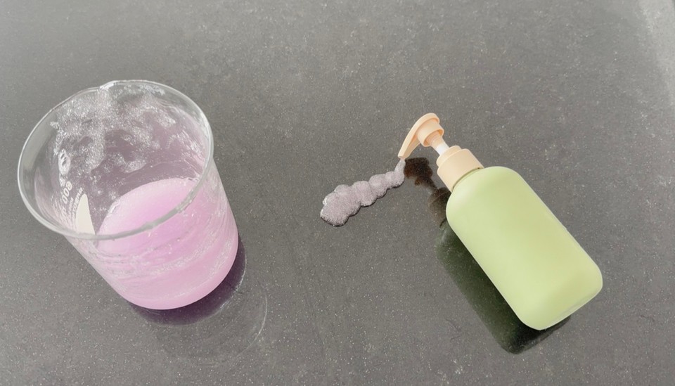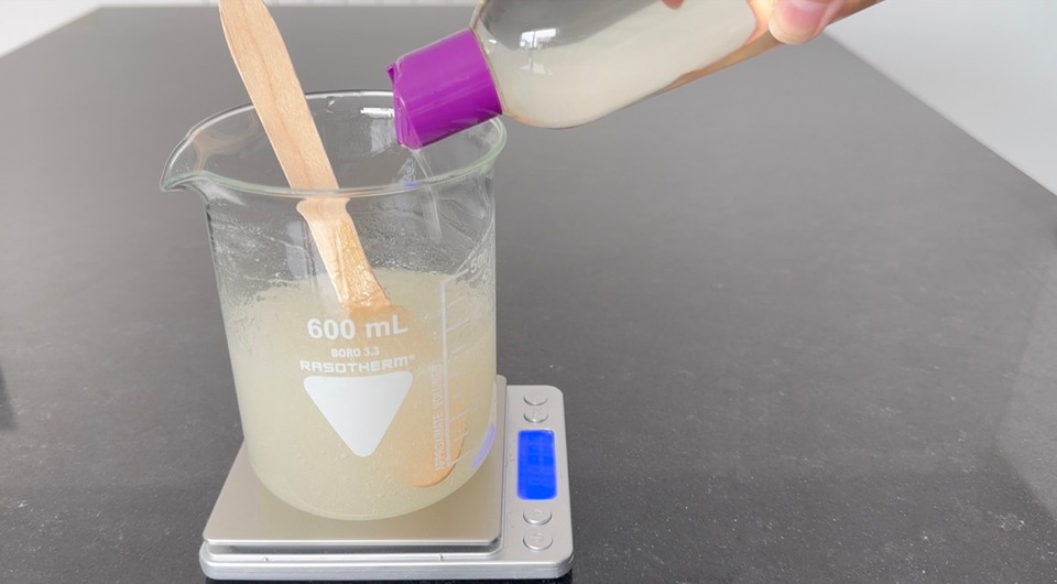 - Add the surfactants and stir gently (manually) to minimize the foam.