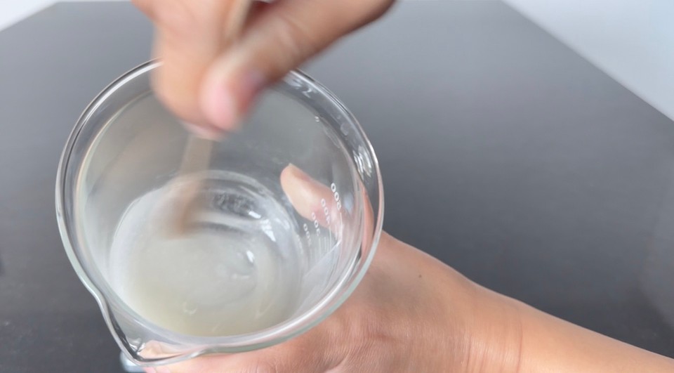 In this formula, I used xanthan gum clear; This type of xanthan gum gives a transparent result, unlike regular xanthan gum, which gives an opaque appearance.