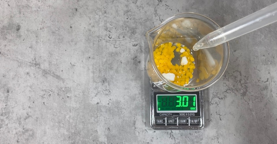 - In a heat-resistant beaker, add all the ingredients. Start with the candelilla wax.