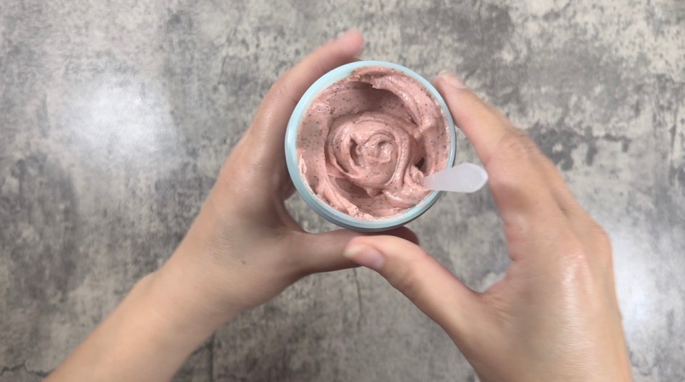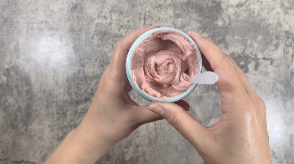 To phase B, I also add strawberry extract powder. This powder gives a pink color to the final product. Strawberry powder extract contains vitamin C and polyphenols. Packed with fruit enzymes and AHAs, it brightens and smoothes the skin.