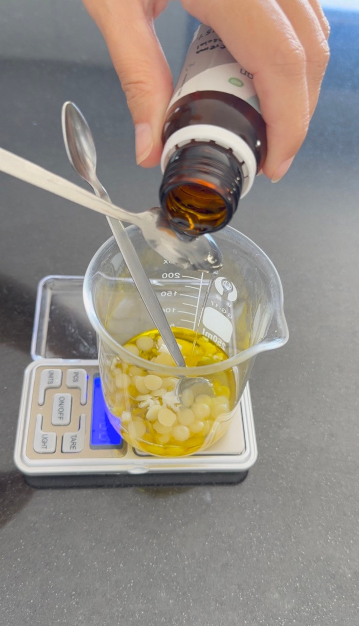 - In another container prepare phase B (vitamin E and the flavored oil).