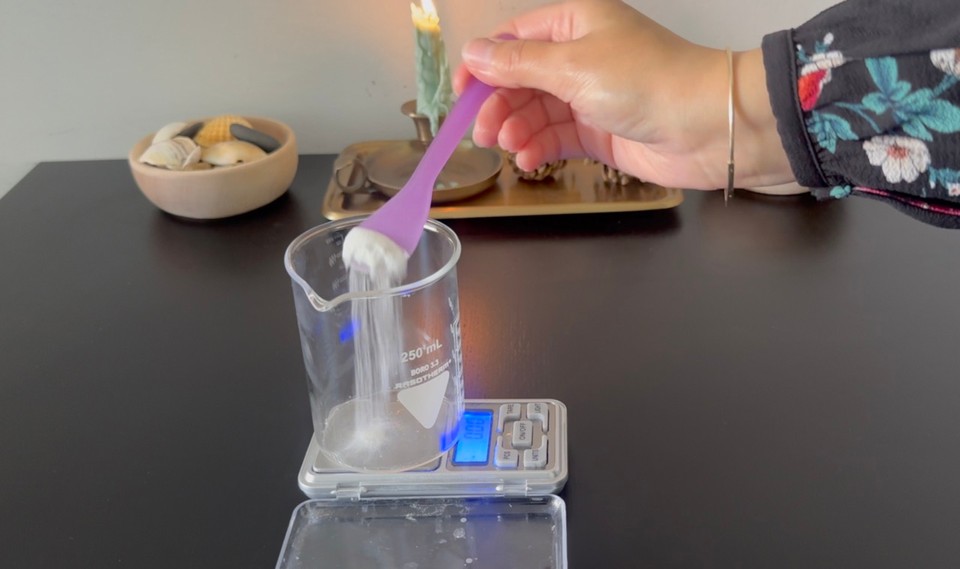 - Add the oil phase (phase B) ingredients to another heat-resistant beaker.