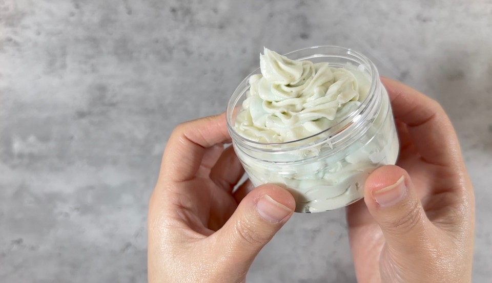 This emulsified body butter is thick and pipable. It is very dense yet absorbs quickly into the skin. You can place it into a tube or a jar container. It's the perfect moisturizer for dry days and dry skin.
