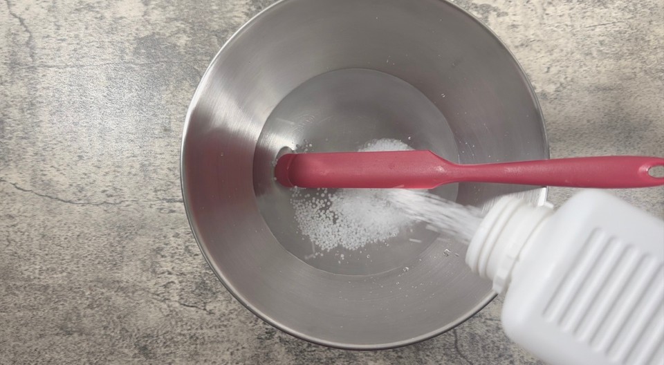 - Add the lye to the water and mix until the lye is dissolved. Set aside.