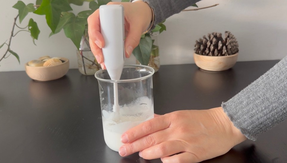 For an emulsifier, I used Sucrose Stearate. Sucrose stearate is a natural emulsifier derived from sugar and stearic acid. Sucrose stearate stands out for its mildness, making it an ideal ingredient for products designed for sensitive skin types. It avoids causing irritation or dehydration. More than just an emulsifier, sucrose stearate is also a moisturizing agent, keeping the skin hydrated. This emulsifier creates a lightweight and silky texture, which absorbs quickly into the skin without leaving a greasy residue. I added the emulsifier to the water phase; the emulsifier will dissolve in the water phase when heated to around 70-75°C.