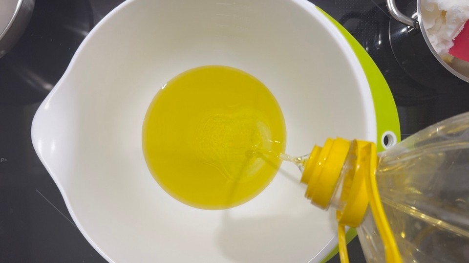 - In another container, add the liquid oils.