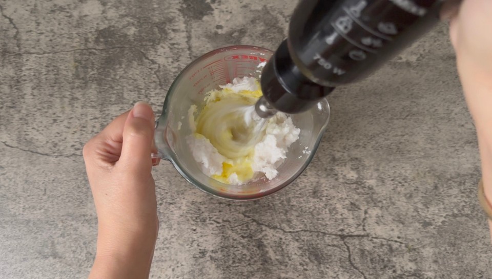 Mix the whipped soap base with a mixture (a whisk) to create a fluffy, creamy texture.